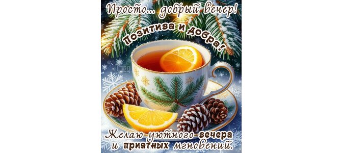 Теги:добрый вечер, вечер, чай, лимон, чашка чая, зима, снег, ель, красивая картинка, шишки, тепла и уюта, хорошего вечера, пожелания на каждый день