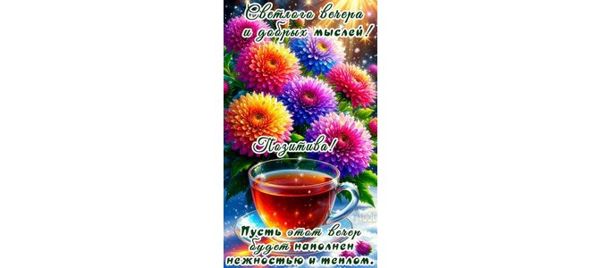 Теги:добрый вечер, вечер, чай, чашка чая, позитив, нежности, тепла, уюта, светлых мыслей, добра, цветы, красивая картинка, пожелания на каждый день