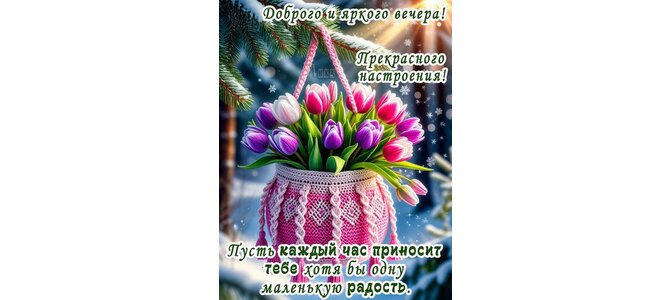 Доброго и яркого вечера! Прекрасного настроения! Пусть каждый час приносит тебе хотя бы одну маленькую радость.