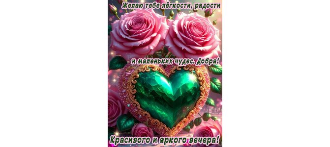 Желаю тебе легкости, радости и маленьких чудес. Красивого и яркого вечера!