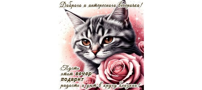 Теги:добрый вечер, вечер, котенок, пушистик, цветы, розы, кошка, пожелания на каждый день, красивая картинка, радости и уюта, интересного вечера