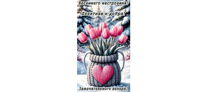 Теги:добрый вечер, вечер, цветы, тюльпаны, зима, снег, лес, позитива и добра, весеннего настроения, сердечко, красивая картинка, пожелания на каждый день