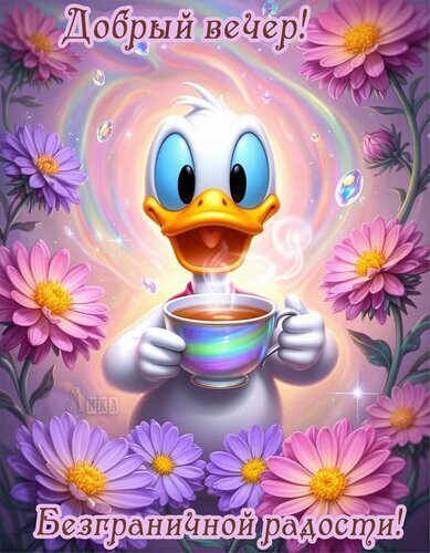 Теги:добрый вечер, вечер, утенок, чай, пожелания на каждый день, цветы, красота, красивая картинка, позитив, улыбка, безграничной радости