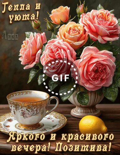 Теги:добрый вечер, вечер, цветы, пионы, розы, чай, лимон, гифка, анимация, красивая анимация, позитив, яркого и красивого вечера, тепла и уюта
