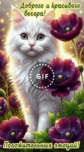 Теги:добрый вечер, анимация, гифка, красивая анимация, вечер, положительных эмоций, кошка, белая кошка, цветы, анемоны, доброго и красивого вечера, пожелания на каждый день