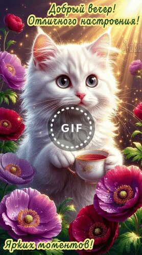 Теги:добрый вечер, анимация, гифка, красивая анимация, ярких моментов, отличного настроения, кошка, белая кошка, анемоны, цветы, чай, пожелания на каждый день