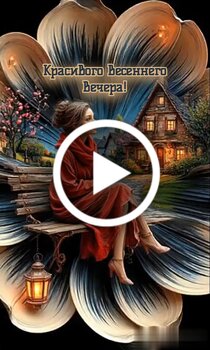 Это атмосферное видео погружает в состояние спокойствия и эстетического наслаждения. На кадрах представлена молодая женщина в ярко-красном платье и накидке, которая задумчиво сидит на скамье в окружении гигантских лепестков цветка. Фон дополняет уютный деревянный дом с теплым светом в окнах и цветущие весенние деревья. Видео наполнено настроением нежности и умиротворения, приглашая зрителя насладиться красотой весеннего вечера и магической сказочной атмосферой.