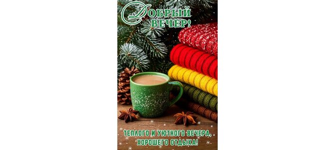 Открытка "ДОБРЫЙ ВЕЧЕР! ТЕПЛОГО И УЮТНОГО ВЕЧЕРА, ХОРОШЕГО ОТДЫХА!"