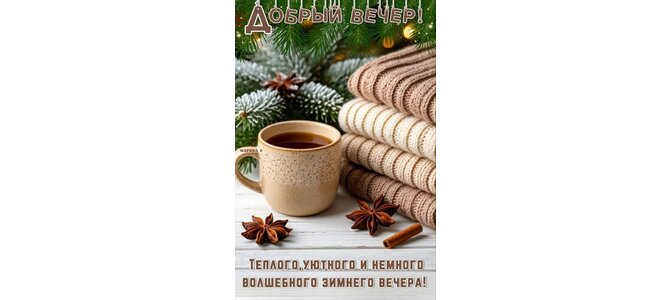 Открытка "ДОБРЫЙ ВЕЧЕР! ТЕПЛОГО, УЮТНОГО И НЕМНОГО ВОЛШЕБНОГО ЗИМНЕГО ВЕЧЕРА!"