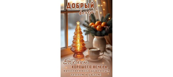 Открытка "Добрый вечер! Желаю хорошего вечера, наполненного душевным теплом и уютом!"