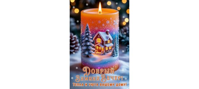 Открытка "ДОБРЫЙ ЗИМНИЙ ВЕЧЕР! ТЕПЛА И УЮТА ВАШЕМУ ДОМУ!"