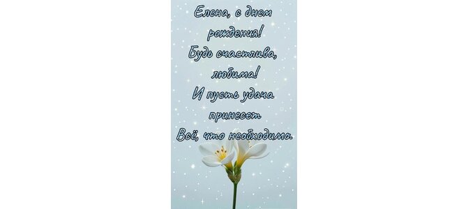 Открытка "Елена с днём рождения! Будь счастлива, любима и пусть удача принесет все, что необходимо."