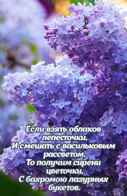 Если взять облаков лепесточки, и смешать с васильковым рассветом, то получим сирени цветочки, с бахромою лазурных букетов.