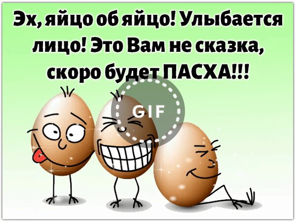 Анимированная открытка "Эх, яйцо об яйцо! Улыбается лицо! Это вам не сказка, скоро будет Пасха!"