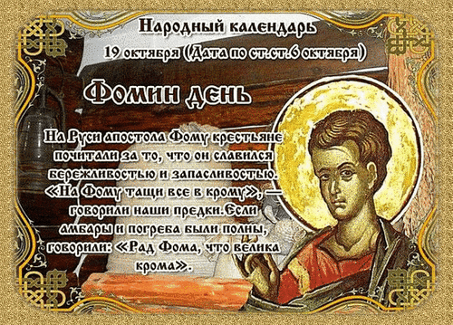 Народный календарь. 19 октября(Дата по ст. ст. 6 октября)Фомин день.