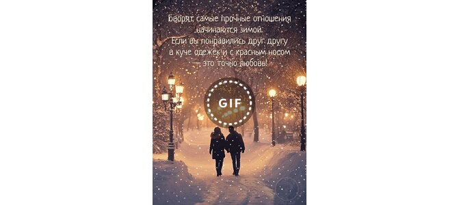 Анимированная открытка "Говорят, самые прочные отношения начинаются зимой. Если вы понравились друг другу в куче одежек..."