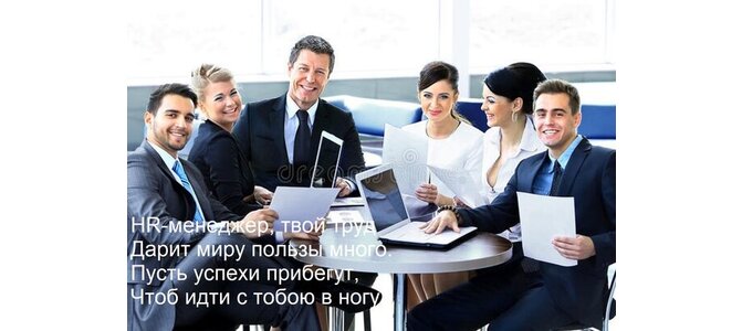 Открытка "HR-менеджер, твой труд Дарит миру пользы много. Пусть успехи прибегут, Чтоб идти с тобою в ногу!"
