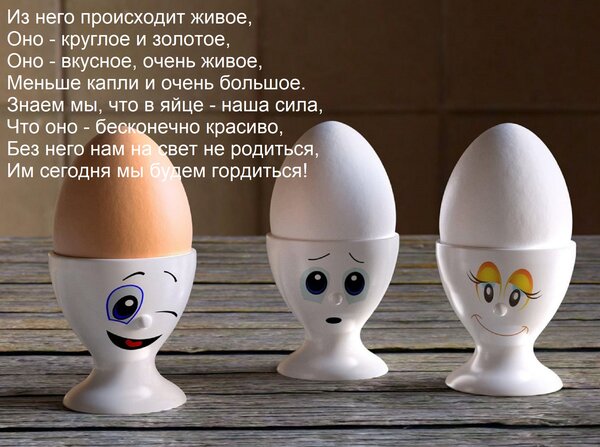 Теги:из него происходит живое, оно - круглое и золотое, оно - вкусное, очень живое, меньше капли и очень большое знаем мы, что в яйце - наша сила, что оно - бесконечно красиво, без него нам на свет не родиться, им сегодня мы будем гордиться