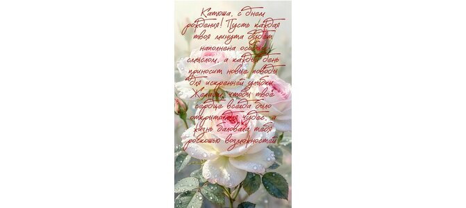 Открытка "Катюша, с днем рождения. Пусть каждая минута будет наполнена особым смыслом"