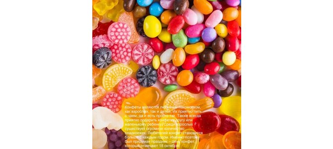 Открытка "Конфеты являются любимым лакомством, как взрослых, так и детей. Их приятно пить с чаем, да и есть пр"