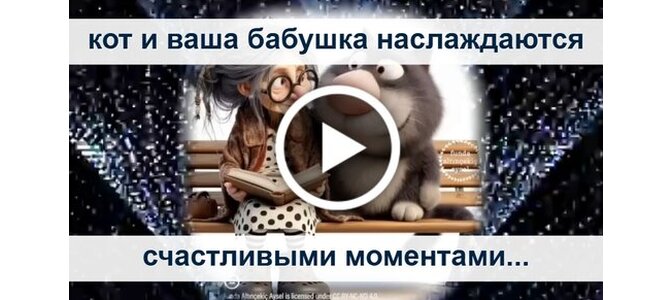 Видеооткрытка "кот и ваша бабушка наслаждаются счастливыми моментами вместе, смеясь и делясь радостью."