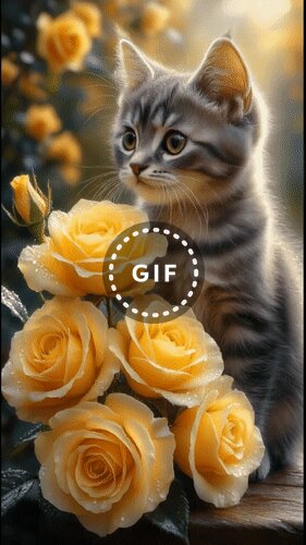Теги:котенок, цветы, розы, гифка, анимация, желтые розы, пожелания на каждый день, милота, красивая анимация, для тебя от души
