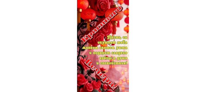 Открытка "Красивого вечера. Пусть он окутает тебя мягким светом уюта и подарит сладкие грёзы в душе и спокойс."