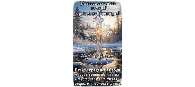 Благословенного вечера! Крещение Господне! Пусть крещенская вода унесёт тревоги, а на их место придет тихая радость и ясность души.