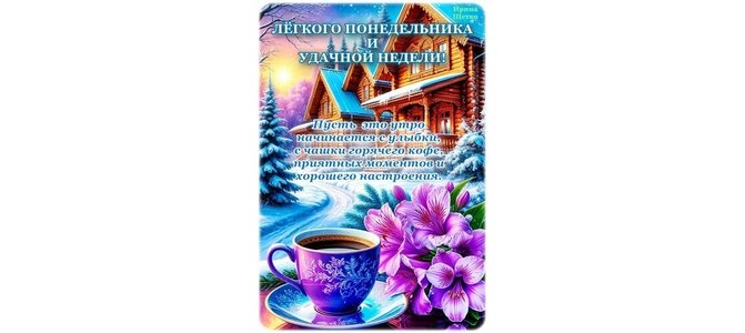 Лёгкого понедельника и удачной недели! Пусть это утро начинается с улыбки, с чашки горячего кофе, приятных моментов и хорошего настроения.