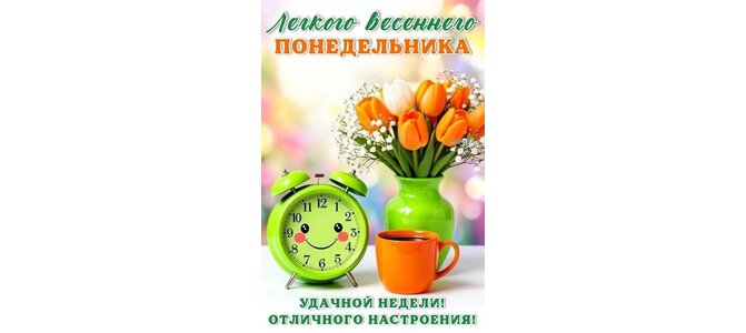 Открытка "ЛЕГКОГО ВЕСЕННЕГО ПОНЕДЕЛЬНИКА. УДАЧНОЙ НЕДЕЛИ! ОТЛИЧНОГО НАСТРОЕНИЯ!"