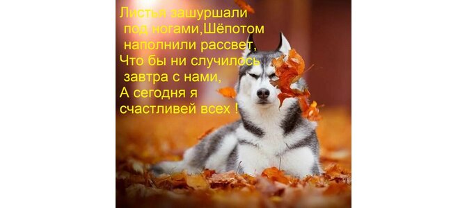 Теги:листья зашуршали под ногами, шёпотом наполнили рассвет, что бы ни случилось завтра с нами, а сегодня я счастливей всех