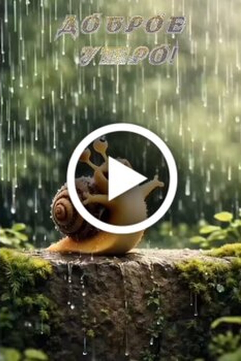 Это короткое и позитивное видео представляет собой анимацию с милым мультяшным персонажем улиткой. В центре сюжета находится радостная улитка, которая под проливным дождем выражает восторг и счастье. Персонаж широко улыбается и поднимает лапки вверх, наслаждаясь природными явлениями. На протяжении всего ролика на фоне падающих капель дождя и лесной зелени появляется надпись Доброе утро. Видео наполнено оптимизмом и предназначено для того чтобы поднять настроение и подарить улыбку в начале нового дня.