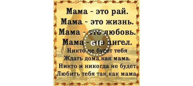 Анимированная открытка "Мама - это рай. Мама - это жизнь. Мама - это любовь. Мама - это ангел. Никто не будет тебя ждать дом"