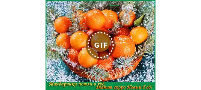 Анимированная открытка "Мандаринки пошли в ход, значит скоро Новый Год!"