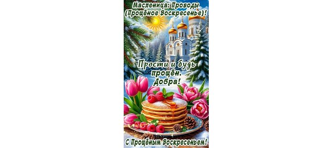 Теги:масленица проводы прощеное воскресенье, масленица, прощеное воскресенье, блины, цветы, фрукты, церковь, собор, прости и будь прощен, добра, красивая картинка