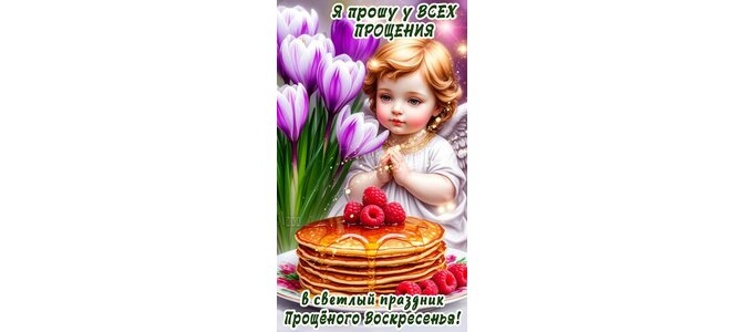 Теги:масленица проводы прощеное воскресенье, масленица, прощеное воскресенье, ангелочек, блины, фрукты, малина, цветы, крокусы, я прошу у всех прощения в светлый праздник прощеного воскресенья