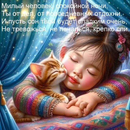 Теги:милый человек, спокойной ночи ты от дел, повседневных, отдохни, пусть, сон, твой, будет, сладким, очень, не тревожься, не печалься, крепко спи