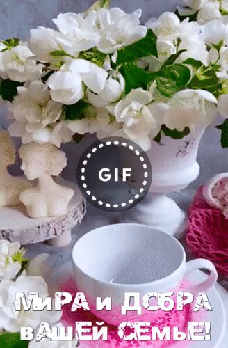 Анимированная открытка "Мира и добра вашей семье!"