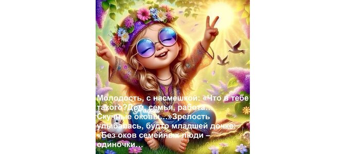 Теги:молодость, с насмешкой что в тебе такого дом, семья, работа скучные оковы зрелость улыбалась, будто, младшей, дочке, без, оков, семейных, люди, одиночки