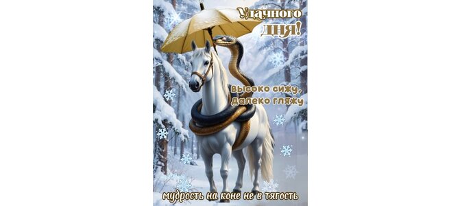 Открытка "Мудрость на коне не в тягость. Удачного дня!"