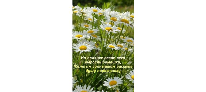 На полянке возле леса выросли ромашки, желтым солнышком раскрыв душу нараспашку