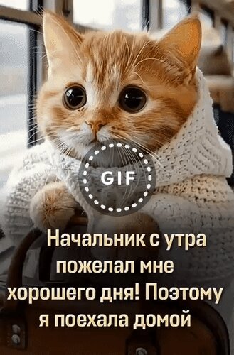 Анимированная открытка "Начальник с утра пожелал мне хорошего дня! Поэтому я поехала домой."