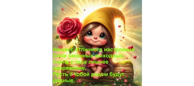 Теги:начни с отличного настроения свои законные выходные скинь с тела лишнее напряжение, пусть с тобой рядом будут родные