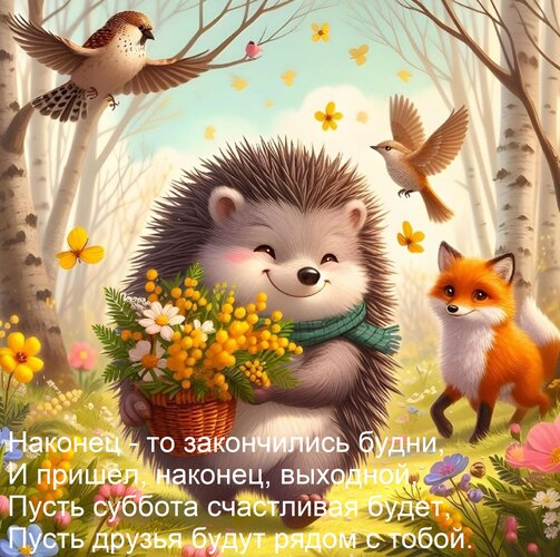 Открытка "Наконец - то закончились будни, И пришел, наконец, выходной, Пусть суббота счастливая будет, Пусть д"
