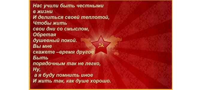 Нас учили быть честными в жизни и делиться своей теплотой, чтобы жить свои дни со смыслом, обретая душевный покой. Вы мне скажете –время другое быть порядочным так не легко, ну, а я буду помнить иное и жить так, как душе хорошо.