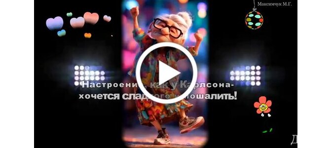 Видеооткрытка "Настроение, как у карлсона, хочется сладкого и пошалить!"