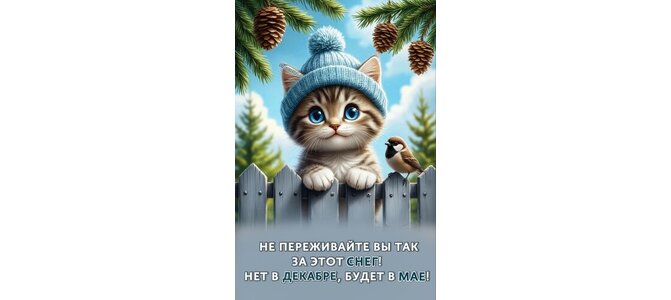 Открытка "НЕ ПЕРЕЖИВАЙТЕ ВЫ ТАК ЗА ЭТОТ СНЕГ! НЕТ В ДЕКАБРЕ, БУДЕТ В МАЕ!"