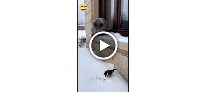 котик в снегу