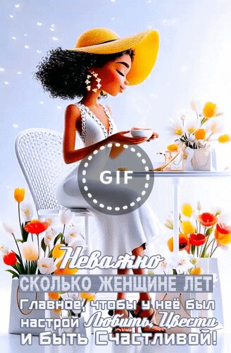 Анимированная открытка "Неважно сколько женщине лет. Главное, чтобы у нее был настрой Любить, Цвести и быть Счастливой!"