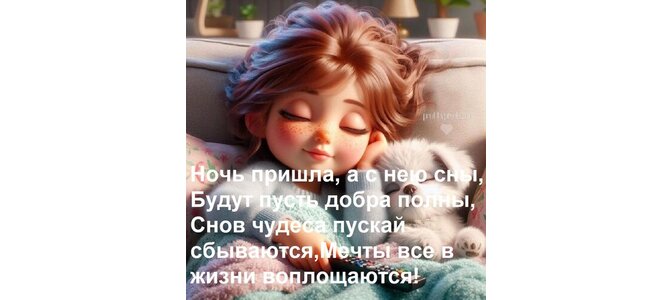 Теги:ночь пришла, а с нею сны, будут пусть добра полны, снов чудеса пускай сбываются, мечты все в жизни воплощаются